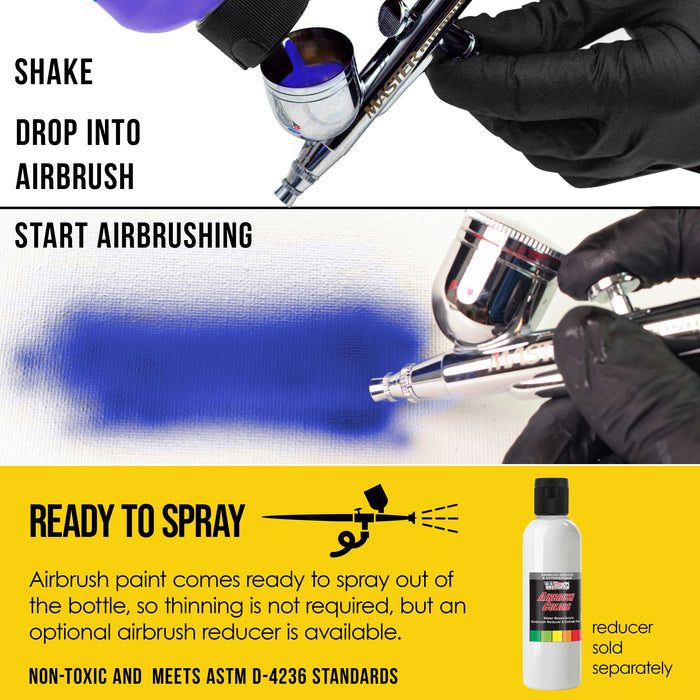 • Ready to Spray: The acrylic spray paint colors are ready to spray straight from the bottle, so no thinning is needed. An airbrush reducer is available for fine line work or to achieve a customized consistency.