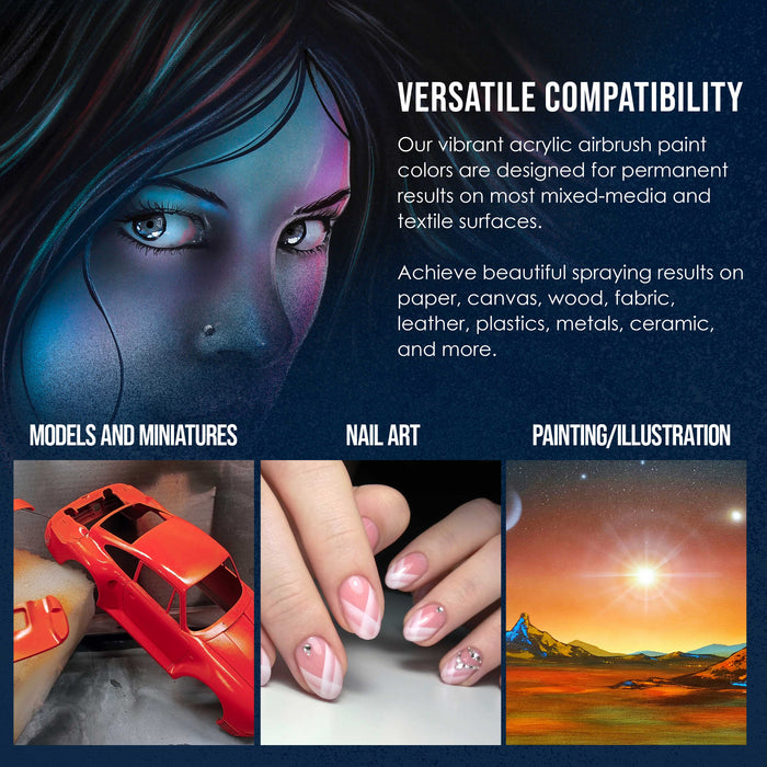 • Opaque Special Effects: This 8-ounce acrylic airbrush paint features opaque colors, allowing the underlying surface or colors to show through. The pre-thinned formula is ready to spray, providing consistent coverage.