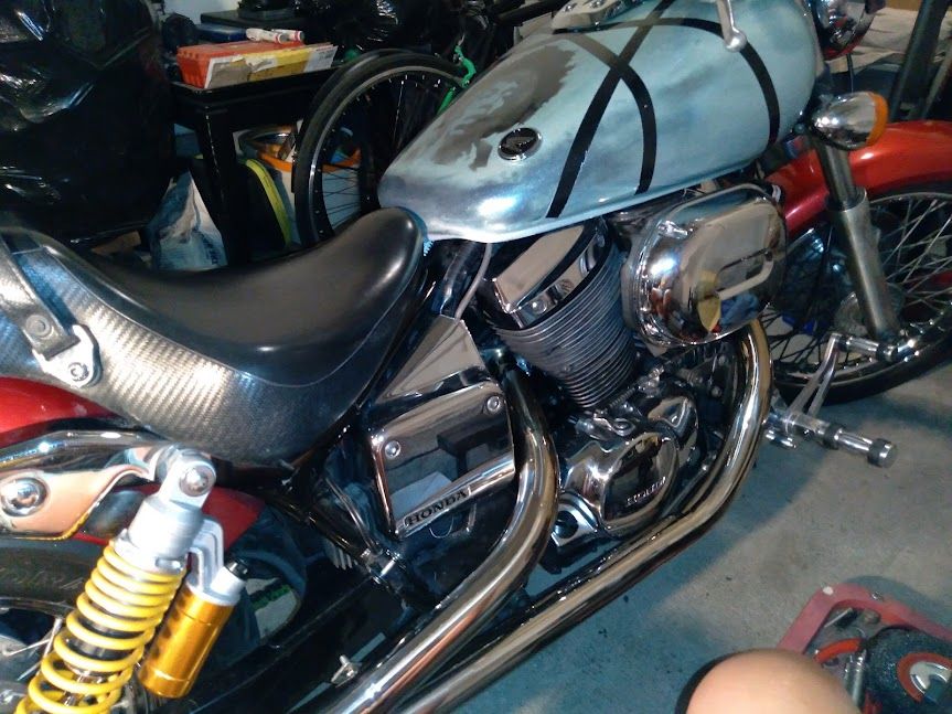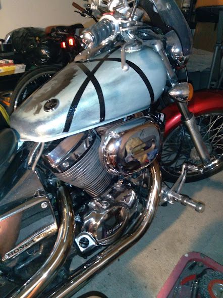 My brush clogged and I got paint all over the place. I thought it looked pretty good (what I painted on top of the tank with a stencil of Jimi Hendrix). I can play guitar that sounds like him and I have a stencil of Slash to paint whoever's next.
