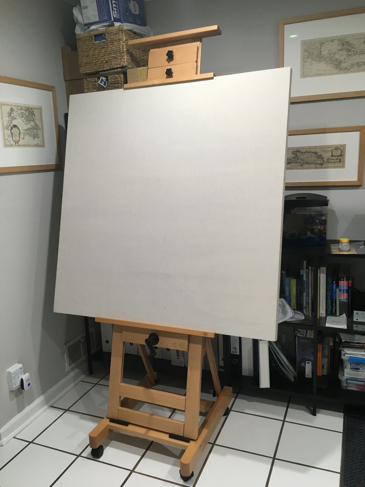 - Heavy-Duty Double Mast Studio Easel: Professional extra-large wooden easel with a double rocker crank, designed for heavyweight canvas projects. Features a natural oil finish on hand-sanded, aged German Beechwood.