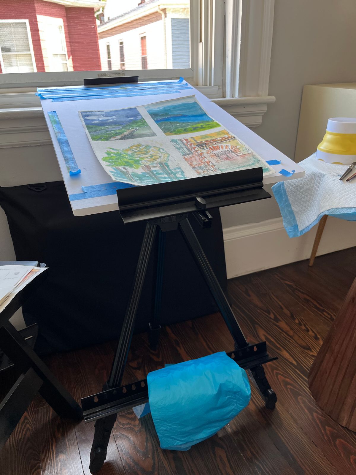 - Accommodates Various Canvas Sizes: Vertically holds panels/canvases 21" to 63" high; horizontally 7" to 40" high. Features double-level legs with adjustable 17.5"W x 1.5"D horizontal fixing tray shelf.