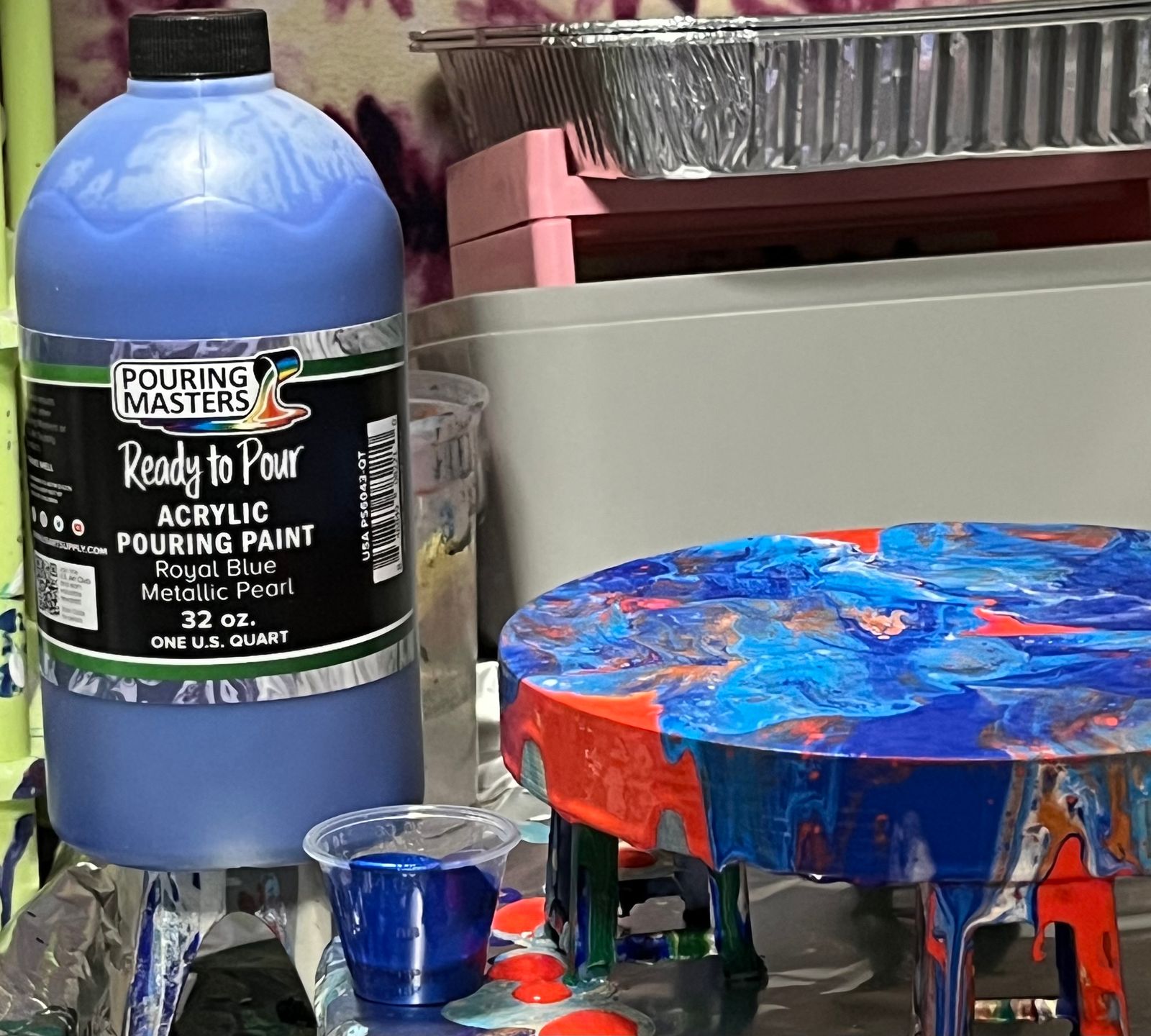 Pouring Masters Royal Blue Metallic Pearl Ready to Pour Acrylic Pouring Paint - Premium 32-Ounce Pre-Mixed Fluid Acrylic Paint - Fluid Art Supplies for Canvas, Wood, Paper, Tile & Rocks