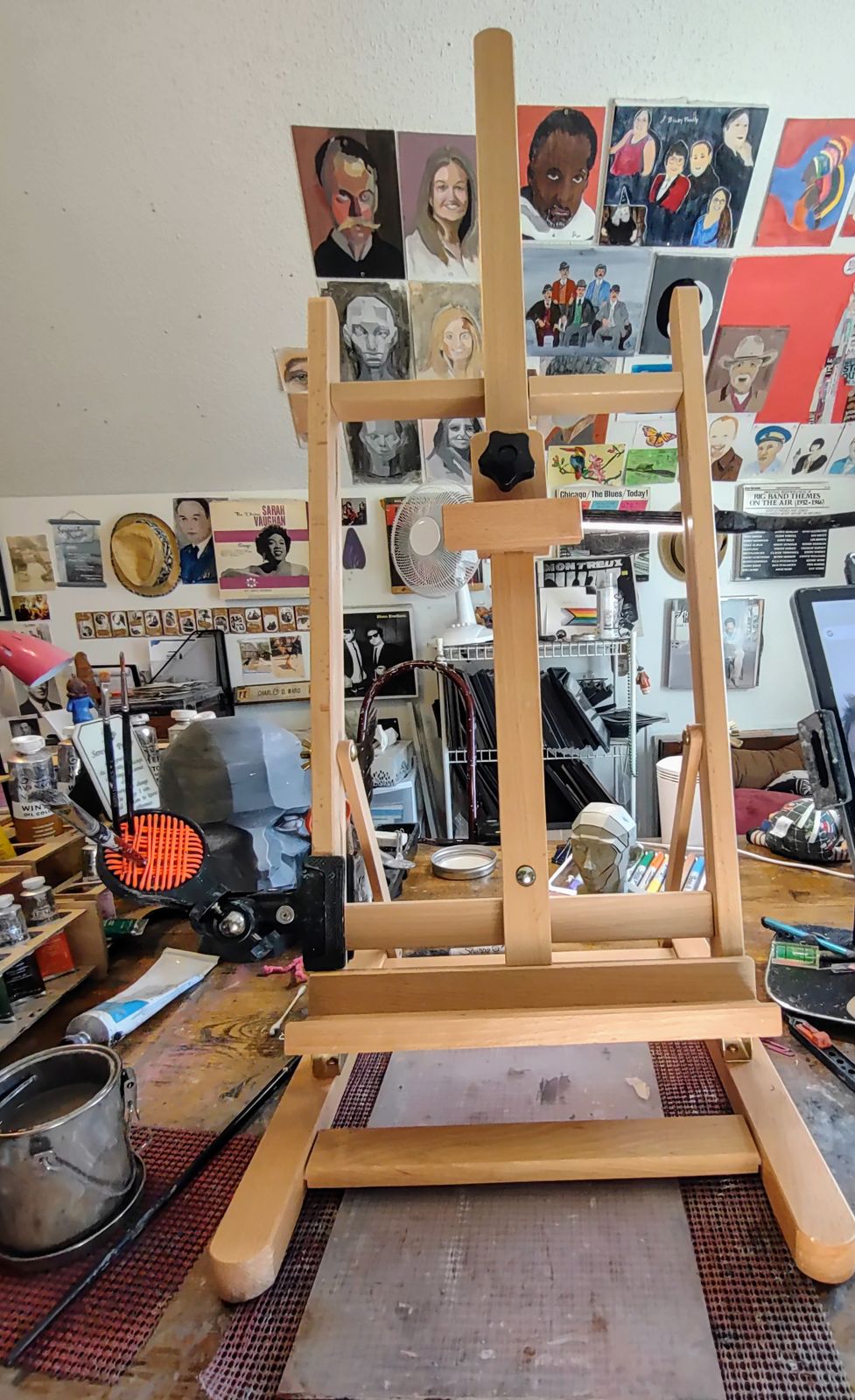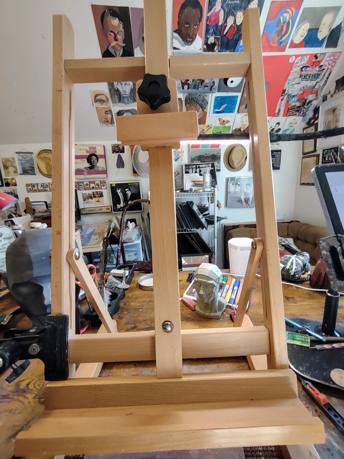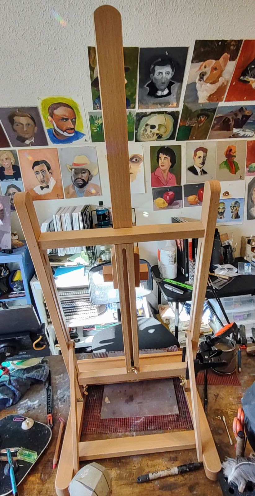 - Adjustable H-Frame Studio Easel: Medium wooden tabletop easel with rubber feet for stable grip. Natural oil finish. Crafted from hand-sanded aged German Beechwood.